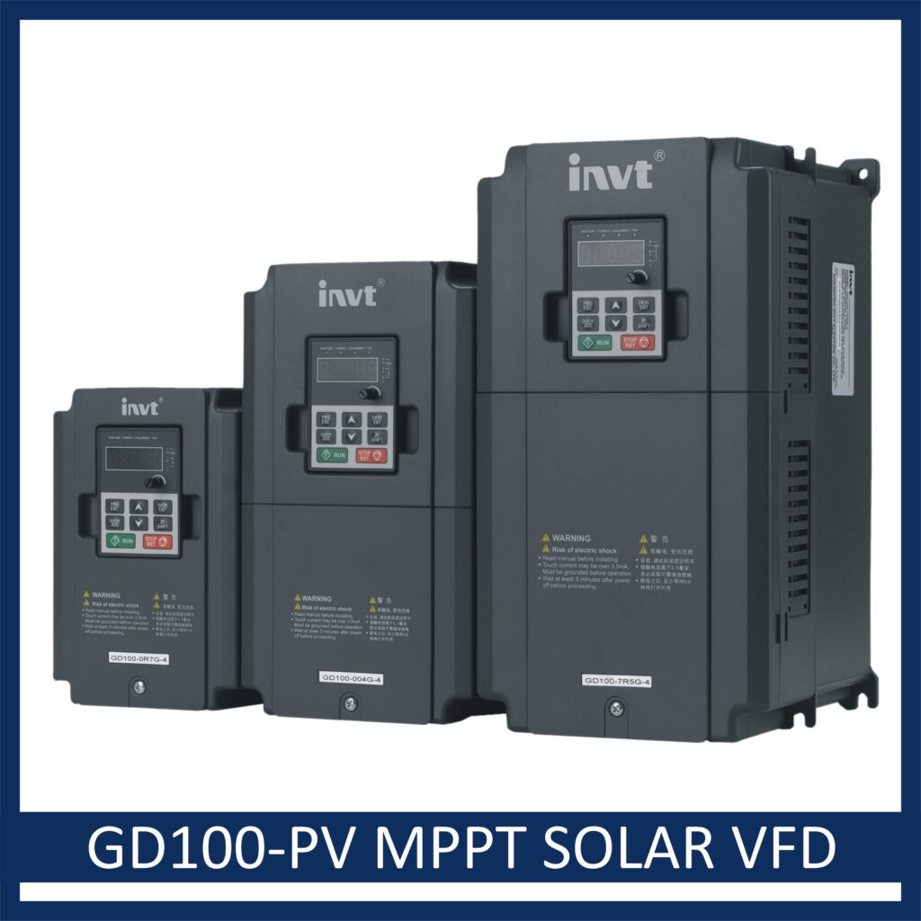 GD100-PV series solar vfd drives are that INVT newly launches specially for solar pumping applications. Based on the original solar pump vfd products, which optimizes the usability and performance, and extends applicable voltage levels and power range of the product. The voltage level can be applied to single phase/three phase 220V, three phase 380V pumps, power range from 0.4kW to 110kW.